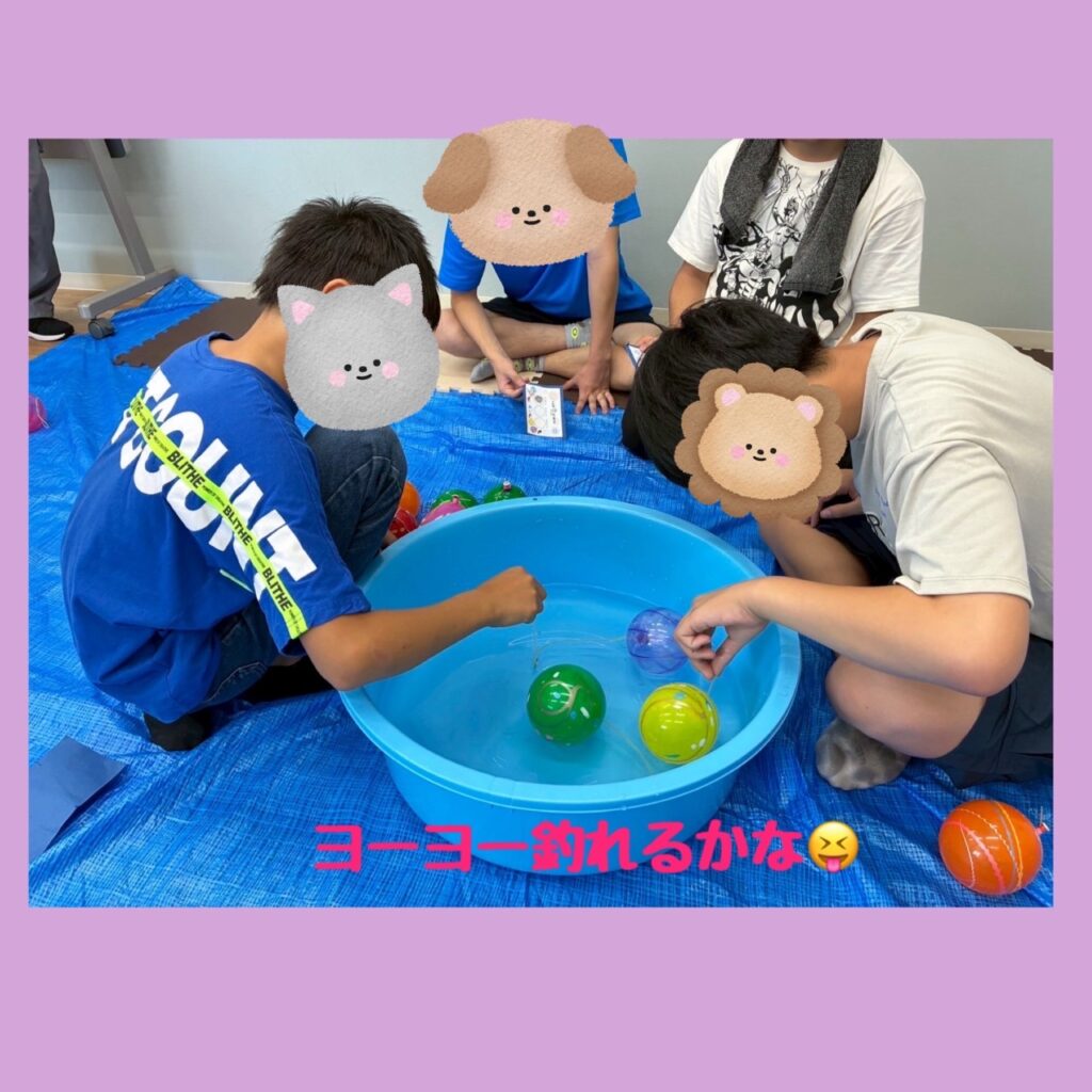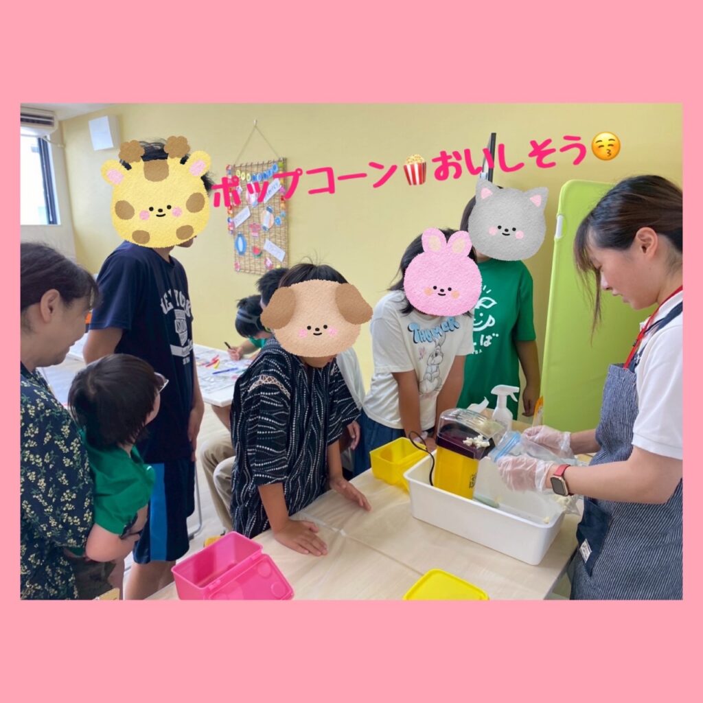 7月30日、31日にしんばの夏祭りを行いました!今年は初めてしんば菩提寺としんば平松の合同で夏祭りを行いました♪夏祭りでは制作で、しおりやうちわ作りをしたり、フランクフルトやかき氷、クレープなどの屋台、ヨーヨー釣りやビンゴゲーム、お楽しみくじなどの遊びを菩提寺と平松をグループで行き来しながら行いました。菩提寺と平松のお友達が一緒になって夏祭りを楽しまれていました♪普段関わりの少ないお友達と遊んだり、久しぶりに会うお友達と過ごし沢山笑顔が見られていました(*^^*)