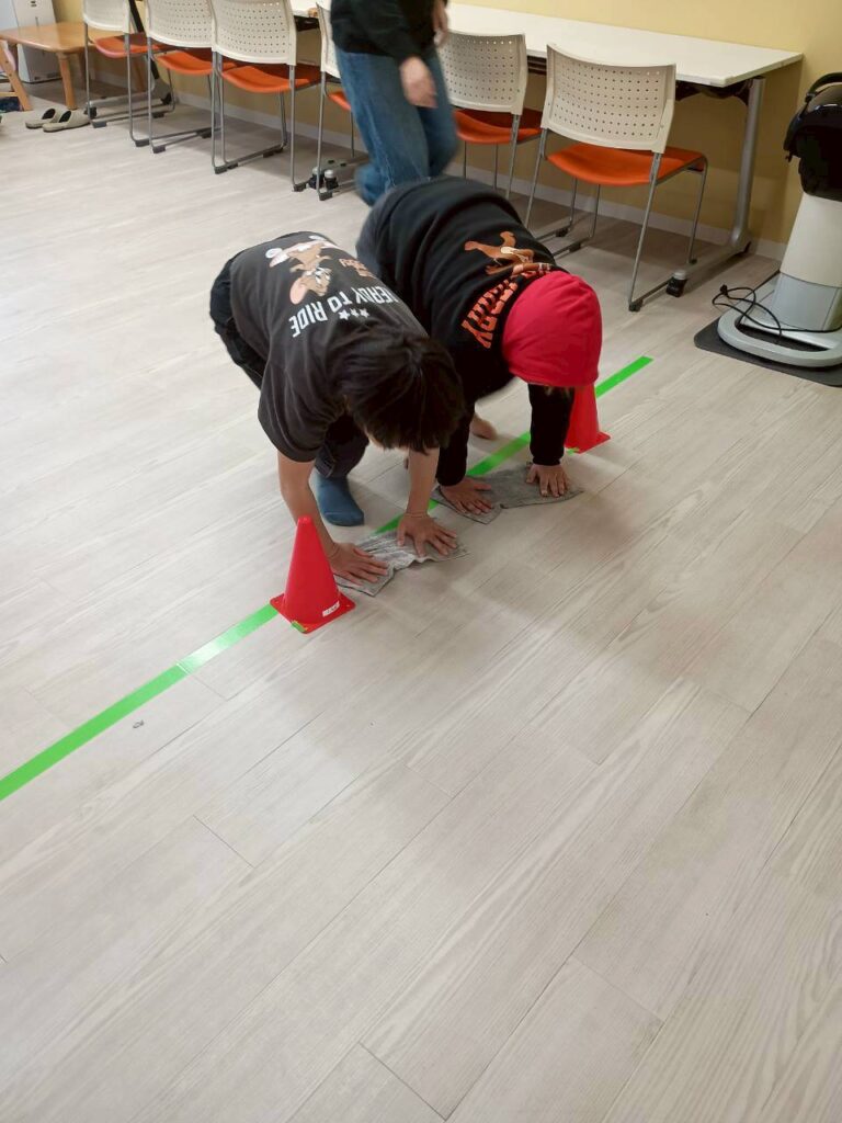 12月26日、今年最後の活動で「雑巾かけリレー」をしました!チームに分かれて行い1年の締めくくりとしてみんなで自分達が使ったしんばのお部屋のお掃除をしました。チームに分かれて順番の話し合いをして順番決めをし、練習をしてから望みました!「よーいスタート!」の声と同時にいっせいにスタートしました!みんなの元気な応援の声が聞こえていました。1位のチームも最後のチームも嬉しい子、悔しい子、色んな子がいましたがみんなで綺麗にできたねと言って終えることができました。本年はしんば平松、菩提寺の2事業所それぞれにおいて日々の活動や支援を通して、子ども達の成長を保護者の皆さまと共有できた1年となりました。保護者の皆さまには日頃より暖かいご理解とご協力を賜り、心より感謝申し上げます。