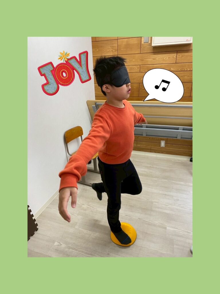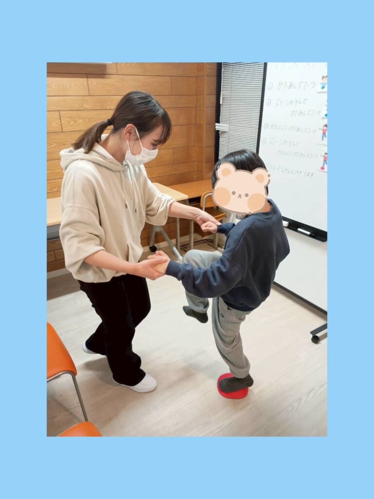 12月から理学療法士の支援員の活動で運動療育を取り入れています(^^)/第一回目の活動は「運動療育(バランスストーン)」を行いました。バランスストーンとは川の石遊びをモチーフにしたものであり、大きさや高さの異なるストーンを床に並べ、その上を落ちないように歩いたり飛び移ったりしてバランス感覚を養うことができます。今回はそのストーンを使ってストーン上で片脚立ち、またアイマスクをして片脚立ちをしてもらいました。片足立ちが難しい子には両手を持ってバランスをとってもらいました。はじめは「簡単簡単♪」と言っていた子もいざやってみると片足でバランスをとることが難しい子がいたり、アイマスクをしない状態での片足立ちはできてもアイマスクをすると一気にバランスの保持が難しくなったりする子もいました。これから運動療育を行うことで正しい姿勢の獲得に繋げていけたり、自分の身体の使い方を知る機会をたくさんつくっていけたらと思います(*^^*)